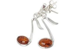 SIL0061 srebrne kolczyki z bursztynem klucz wiolinowy S