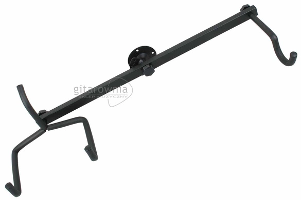 Wieszak gitarowy Rockstand RS20931B, do montażu na ścianie. Umożliwia zawieszenie gitary klasycznej bądź akustycznej pod kątem, widełki zostały opatrzone warstwą ochronną z gumy. Długość ramy: 604 mm.