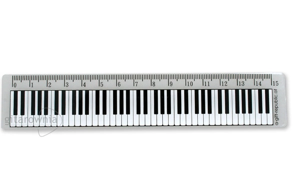 - Linijka transparentna z motywem klawiatury fortepianu o długości 15 cm.