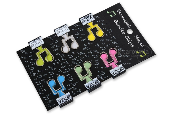 - Komplet 6 spinaczy biurowych w kształcie nut.