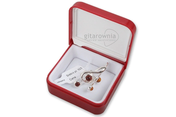- Eleganckie kolczyki w kształcie klucza wiolinowego. Próba srebra 925, bursztyn naturalny.