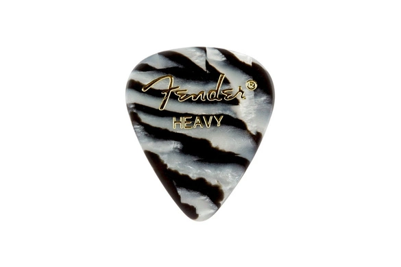 Fender Premium Celluloid 351 Zebra kostki gitarowe amerykańskiej firmy Fender. Wykonane z celluloid'u - elastycznego tworzywa, będącego połączeniem celulozy i kamfory, najczęściej wykorzystywanego do produkcji kostek gitarowych.