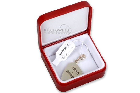 Kostka wykonana jest ze srebra wysokiej próby 925. Wyrób wykończony ręcznie, wykonany precyzyjnie, z dbałością o szczegóły, ze szlachetnego materiału. Dedykowany dla fanów muzyki, gry na gitarze. Przygotowany w eleganckim opakowaniu, gotowy jest do podarowania. Akcent patriotyczny na 100 lecie odzyskania niepodległości. Wygrawerowana data 1918 - 2018 jest jednostronna. Wymiary kostki: 19 x 16 mm.