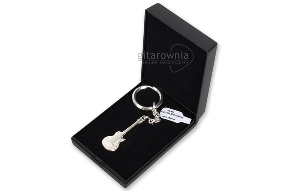 Brelok - gitara wykonana jest ze srebra wysokiej próby 925. Zapinka (łańcuszek i kółko) – posrebrzane. Wyrób wykończony ręcznie, wykonany precyzyjnie, z dbałością o szczegóły, ze szlachetnego materiału. Dedykowany dla fanów muzyki, gry na gitarze. Przygotowany w eleganckim opakowaniu, gotowy jest do podarowania.