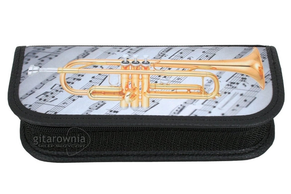 - Elegancki, sztywny mały piórnik z motywem muzycznym - trąbka.