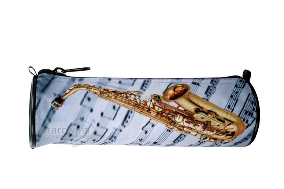 Oryginalny piórnik w kształcie tuby. Motyw muzyczny - saksofon.