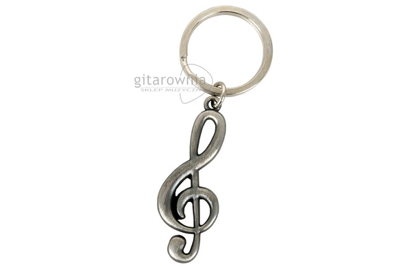 - Metalowy breloczek do kluczy w kształcie klucza wiolinowego.