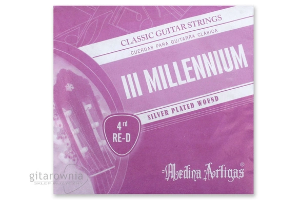 Pojedyncza struna do gitary klasycznej wyprodukowana ze specjalnej formuły nylonu, co owocuje świetnym brzmieniem i intonacją. Struna basowa D-4 z posrebrzanym oplotem. Może posłużyć jako zamiennik albo struna zapasowa do kompletu Medina Artigas 720 III Millennium.