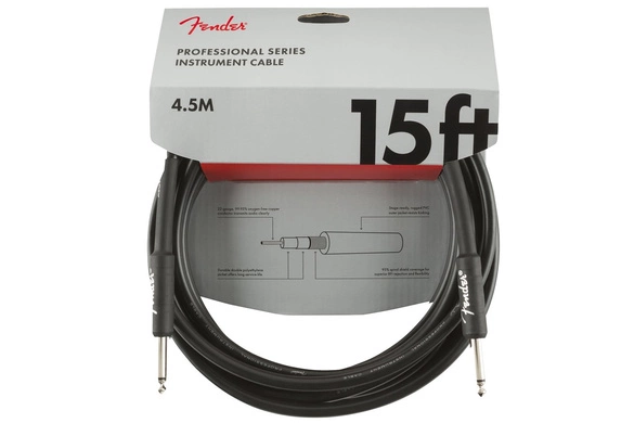 Przewód gitarowy legendarnej marki Fender, model Professional series o długości 4.5 metrów. Przewód jest sprzedawany w oryginalnym, fenderowskim opakowaniu. Wyroby Fender'a charakteryzują się bardzo wysoką jakością! Jest to oryginalny produkt, który można nabyć po bardzo atrakcyjnej cenie. Końcówki przewodu to dwa proste jacki 1/4".
