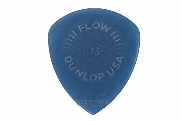 Dunlop Flow Standard Grip. Kostka z ostrym czubkiem, wykonane z materiału Ultex® ze specjalnie przygotowaną chropowatą powierzchnią zapewniają pewny chwyt. Nie wyślizgują się spomiędzy palców co znacznie ułatwia grę zwłaszcza początkującym gitarzystom, pozwalając skupić się na grze a nie na utrzymaniu kostki w palcach. Piórka o mniejszej grubości są doskonałe do akustycznej gry akordowej, podczas gdy kostki o nieco większej grubości i twardości sprzyjają grze agresywnej z silnym atakiem więc doskonale "leżą" w palcach rockmanom.