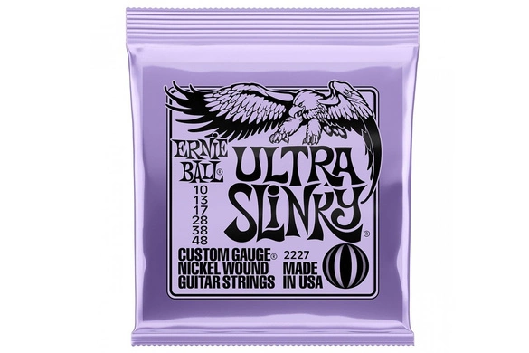 Ultra Slinky to zestaw 6 strun do gitary elektrycznej z serii Slinky Nickel. Grubości: .010" .013" .017" .028" .038" .048". Łączą w sobie cechy strun Regular i Power Slinky.