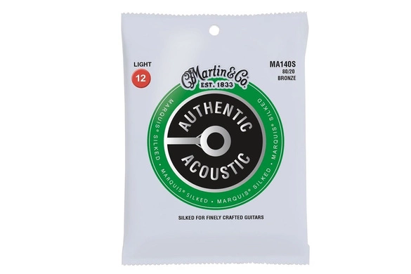 Komplet strun do gitary akustycznej z serii Authentic Acoustic Silked . Martin MA140S zostały wyprodukowane z materiałów wysokiej jakości. Rdzeń z drutu stalowego oraz owijka z brązu 80/20 zapewniają nie tylko żywotność i ochronę przed korozją, ale również świetną grywalność i czysty zrównoważony ton. Dodatkowo dodano miękki jedwabny oplot do końcówek strun, aby zapobiec zużyciu elementu na mostku i płycie mostu. Jedwabny okład zapewnia wygodną warstwę ochronną za każdym razem, gdy zmieniasz struny.