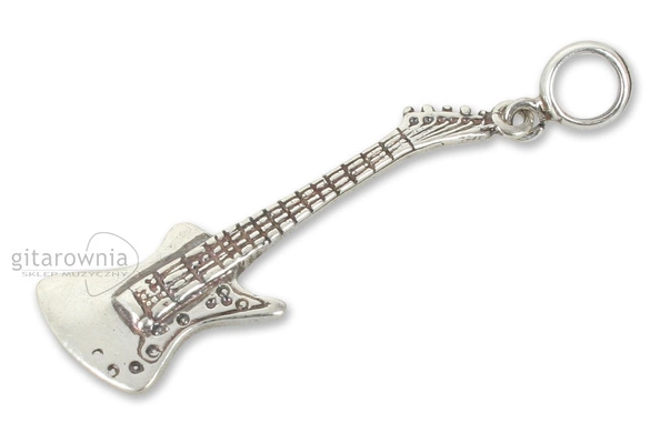 Srebrny wisiorek na łańcuszek lub rzemyk w kształcie gitary elektryczna EXP. Oryginalny pomysł na prezent.