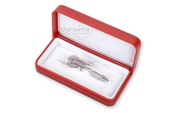 - Elegancka broszka w kształcie gitary elektrycznej. Próba srebra - 925. Długość broszki 4 cm.