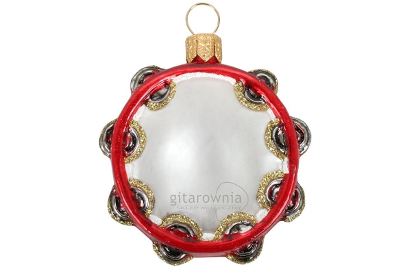 Ręcznie malowana bombka z dmuchanego szkła w kształcie tamburynu. Piękna ozdoba choinkowa, która powinna zagościć na twoim świątecznym drzewku.