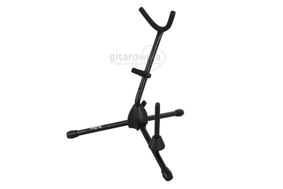 Statyw pod saksofon tenorowy lub altowy. To najlepsze co możesz zrobić dla swojego instrumentu. Nie będzie trzeba się bardzo schylać, żeby na koncercie chować i wyciągać saksofon z futerału leżącego na ziemi. Można też bardzo ładnie wyeksponować swój instrument w domu. Rzecz bardzo przydatna! Dodatkowo dołączono wkręcany kołek na flet lub klarnet.