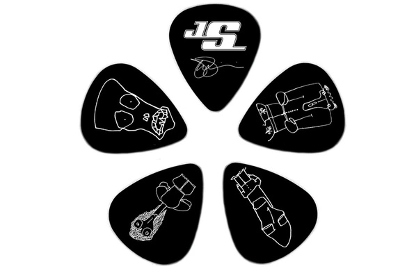 - Zestaw oryginalnych kostek gitarowych Joe Satriani z reprodukcjami jego osobistych rysunków. Opakowanie zawiera 10 sztuk. Rozmiar: medium.