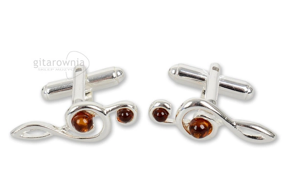 - Eleganckie spinki do mankietów w kształcie klucza wiolinowego. Próba srebra - 925. Wymiary klucza 24 x 9mm.
