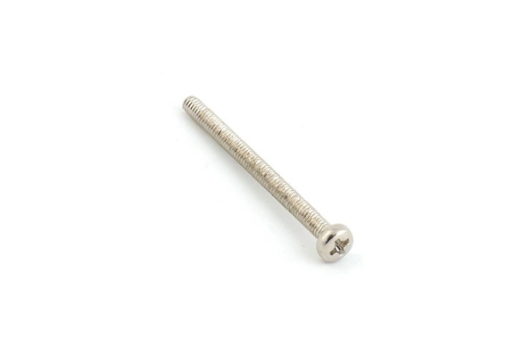Śruba montażowa do przetworników, metryczny gwint M2,5, długość 30mm, główka 5mm z wgłębieniem krzyżowym. Kolor: chrom. Nie nadaje się do montażu przetworników humbucker produkowanych w USA!