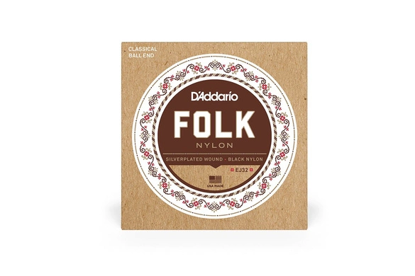 Komplet strun D'Addario Folk EJ32 do gitary klasycznej. Struny zostały wykonane z wysokiej jakości czarnego nylonu, posiadają posrebrzaną owijkę strun basowych. Zakończenie "Ball End" czyli tzw. kulką, pozwala na prostą instalację strun bez potrzeby wiązania. Dzięki doświadczeniu firmy D'Addario każda struna jest wykonana precyzyjnie dostarczając ciepłego, zrównoważonego brzmienia.