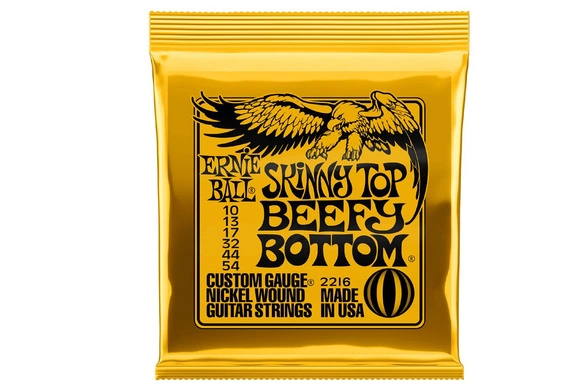 Komplet 6 strun do gitary elektrycznej Skinny Top Bottom Beefy z serii Slinky Nickel. Grubości: .010" .013" .017" .032" .044" .054". Struny wykonane z najwyższej jakości stali o rdzeniu sześciokątnym owiniętym niklowaną owijką. Dzięki zastosowanym materiałom najwyższej jakości Ernie Ball to struny trwałe, świetnie brzmiące i odporne na pot ludzki!!