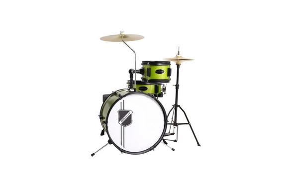 Perkusja zawiera wszystko co jest na zdjęciach, na uwagę zasługują specjalne talerze perkusyjne o obniżonej głośności i zwiększonej wytrzymałości - doskonałe dla początkujących muzyków! Kolor: Green Sparkle.