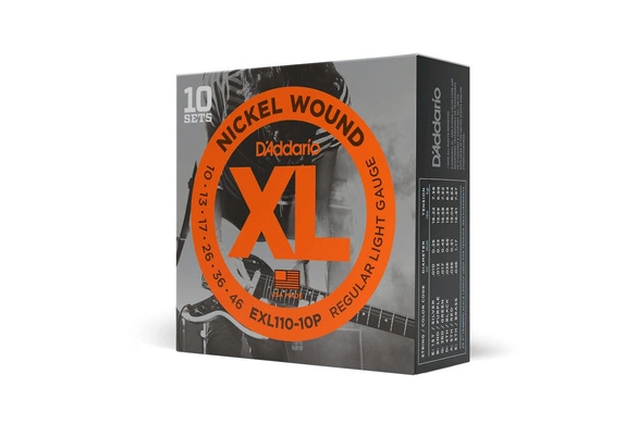 Opakowanie zawiera 10 kompletów oryginalnych strun EXL110 zapakowanych w odrębne hermetyczne opakowanie foliowe.