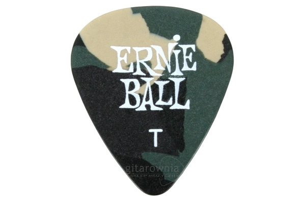 Kostki gitarowe firmy Ernie Ball.  Wykonane z "azotanu octanu celulozy" - elastycznego tworzywa, najczęściej wykorzystywanego do produkcji kostek gitarowych. Klasyczny kształt, logo producenta. Rozmiar - thin (.48mm), kolor - moro - kamuflaż.