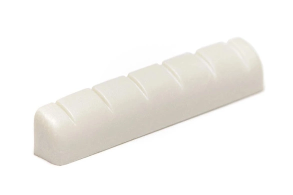 Siodełko do gitary akustycznej renomowanej firmy Graph Tech, wykonane ze specjalnego tworzywa TUSQ. TUSQ jest po prostu bardziej skuteczny w przenoszeniu wibracji na górę gitary. Siodełka Graph Tech zapewniające lepszy poślizg strun, zmniejszając możliwość zacinania się strun na siodełku, a w konsekwencji niestabilności stroju czy nawet zerwania struny. Siodełko przeznaczone do gitar 6-strunowych, posiada nacięcia na struny oraz płaski spód.