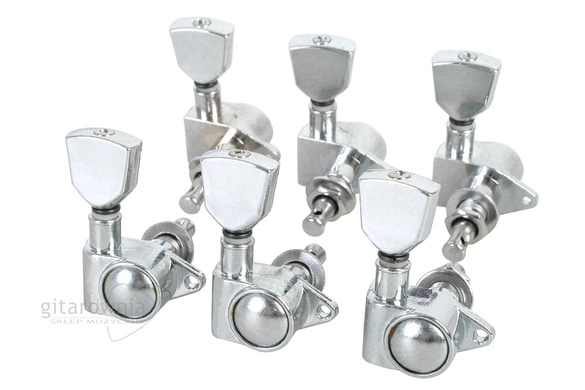 Komplet chromowanych kluczy gitarowych KLPS133. Montowane w układzie 3+3.