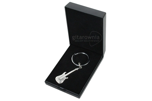 Brelok - gitara elektryczna wykonany ze srebra wysokiej próby 925. Zapinka (łańcuszek i kółko) – posrebrzane. Wyrób wykończony ręcznie, wykonany precyzyjnie, z dbałością o szczegóły, ze szlachetnego materiału. Dedykowany dla fanów muzyki, gry na gitarze. Przygotowany w eleganckim opakowaniu, idealny pomysł na prezent.