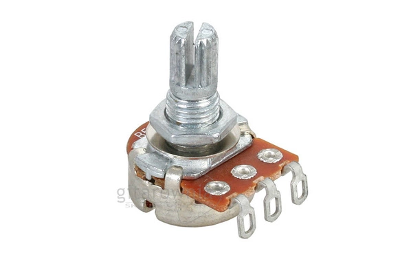 - Potencjometr 500 kOhm, liniowy, najczęściej stosowany jako potencjometr barwy tonu w gitarach z humbucker'ami * gwint 6.8 mm * średnica puszki 16,5 mm * wysokość trzpienia 15 mm *