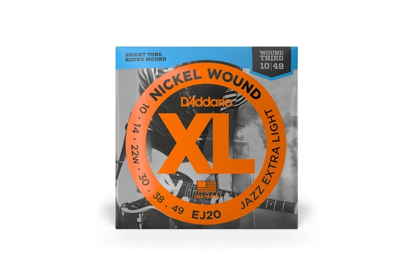 Struny D'Addario XL Nickel Wound EJ20 przeznaczone do gitary elektrycznej. Bardzo popularny set. Struny posiadają sześciokątny rdzeń oraz owijkę wykonaną ze stalowego, niklowanego drutu. D'Addario XL znane są z jasnego, wyrazistego brzmienia oraz znakomitej intonacji. Komplet charakteryzuje się uniwersalnością, nadaje się do wielu gatunków muzycznych.