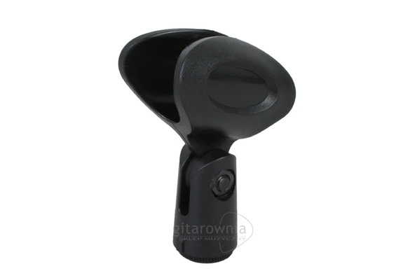 - Uchwyt mikrofonowy wykonany z tworzywa sztucznego, przeznaczony do mikrofonów dynamicznych i bezprzewodowych.