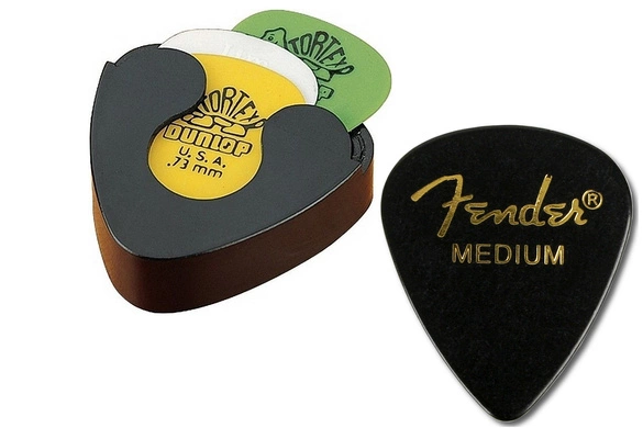 DUNLOP 5005 pickholder z kostą Fender Black classic celluloid medium
