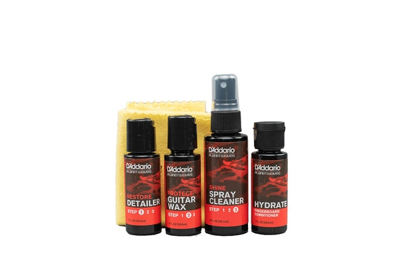 Zestaw zapewnia wszystko, czego potrzebujesz, aby wykończenie Twojego instrumentu wyglądało tak wspaniale, jak w dniu, w którym go kupiłeś. Zestaw Instrument Care Essential zawiera 3-stopniowy system pielęgnacji: polerowania, odżywkę Hydrate do podstrunnicy i bawełnianą szmatkę do polerowania.