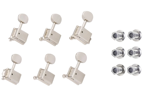 Zestaw oryginalnych chromowanych kluczy gitarowych marki Fender model Classic Gear. Stosowane w gitarach American Performer. Dwupinowy system mocowania zapewnia szybką i prostą instalację. Przełożenie 18:1. W zestawie tuleje i podkładki.