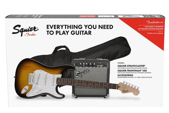 Zestaw Squier Strat Pack to idealny wybór dla początkujących, ma wszystko, czego potrzebujesz, aby rozpocząć grę od razu po wyjęciu z pudełka.