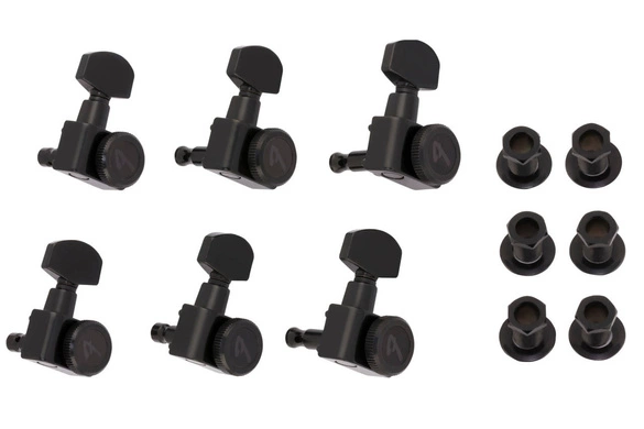 Zestaw sześciu kluczy blokowanych, zaprojektowanych tak, aby pasowały do większości gitar elektrycznych Fender w nowoczesnym stylu, z konfiguracją montażową z podwójnymi bolcami. Stroiki z wysokim słupkiem są używane do strun z owijką, a stroiki z krótszym słupkiem są używane do strun gładkich. Przesunięte tunery zwiększają kąt łamania nad nakrętką i poprawiają stabilność strojenia.
