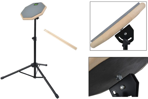 Pad ćwiczeniowy Kaline Stands PPM300 to model o średnicy 21 cm. Korpus wykonany został z drewna. Górna część pada, w którą uderzamy została wykonana z gumy o odpowiedniej twardości imitującej naturalne odbicie werbla. Spodnia część pada została pokryta specjalnym materiałem, który w czasie naszej gry dodatkowo likwiduje hałas i izoluje drewno od podłoża. Pad może być używany wszędzie i w każdej chwili, możemy go położyć na biurku, ławce lub przykręcić do statywu.