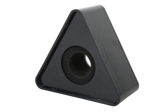 - Kostka reklamowa trójkąt na mikrofon. Wykonana z tworzywa sztucznego, wewnątrz otworu pianka.