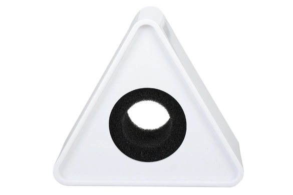 Kostka reklamowa trójkąt na mikrofon. Wykonana z tworzywa sztucznego, wewnątrz otworu pianka.