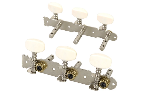 Jeremi ZA10 to zestaw kluczy (2 rzędy 3+3) do gitar akustycznych. Umożliwia założenie zarówno strun metalowych jak i nylonowych. Klucze są niklowane. Rozstaw kołków jest standardowy - 35 / 35 mm. Ich średnica to 6 mm. Wysokość kołków do wiązania strun - 28 mm Rozstaw otworów na śrubki montażowe wynosi 30 / 35 / 33 mm. W komplecie śrubki montażowe. Zestaw ten pasuje to większości gitar z główką w stylu klasycznym.
