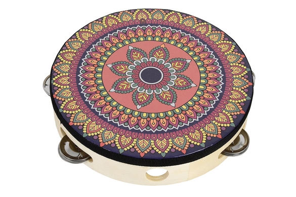 - Tamburyno z membraną, 12 blaszek w 6 otworach. Średnica 20 cm, wysokość 4,5 cm.