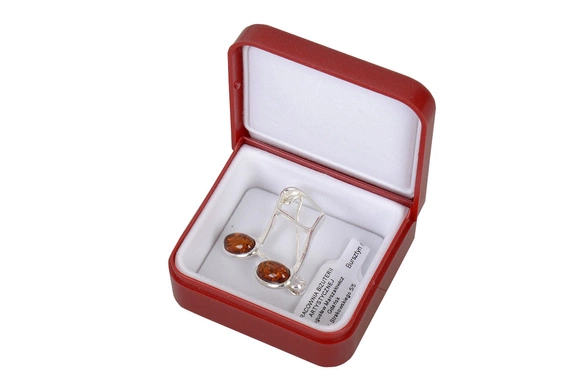 - Elegancka broszka, ręcznie wykonana ze srebra i bursztynu. Motyw muzyczny NUTKI. Próba srebra - 925, bursztyn.