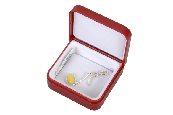 Próba srebra - 925, bursztyn naturalny. Wymiary - 20(30) x 11 mm.
