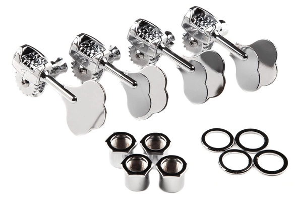 Zestaw czterech chromowanych kluczy do basu z wytłoczonym logo Fender „F” na obudowie. Zastosowanie w nowoczesnych modelach basów Precision Bass®, Jazz Bass® i Dimension™, w tym basach American Standard wyprodukowanych w latach 2007–obecnie oraz basach American Deluxe wyprodukowanych w latach 2009–obecnie. W zestawie tuleje i elementy montażowe.
