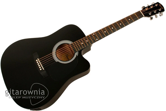 - Squier by Fender (U.S.A). Pudło w kształcie Dreadnought / Western. Progi - 20 medium, mosiężne. Klucze - Die-Cast, chromowane. Menzura - 643 mm. Wykończenie - czarne, połysk. Produkt posiada próbkę MP3.