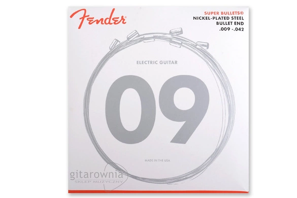 Fender to znana i ceniona marka gitar a także strun. Rozmiar strun to .009"- .042". Struny te mają wyraźne, jasne brzmienie. Struny wykonane są ze stali z owijką niklowaną. Z tymi