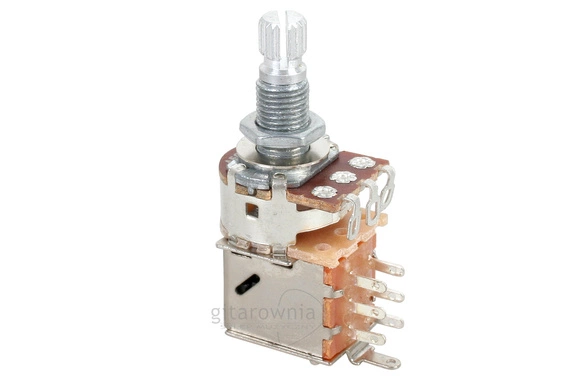 A500K - PP18 logarytmiczny potencjometr push pull, stosowany przy układach głośności w gitarach z humbuckerami (przystawkami dwucewkowymi).